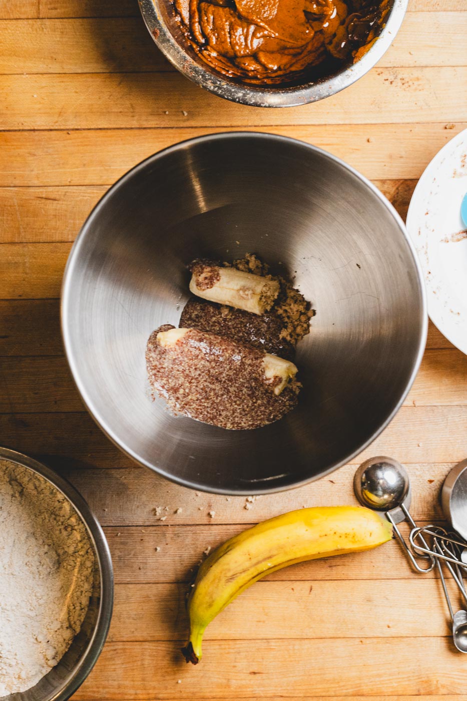 2. In a large bowl, mix all wet ingredients and then add all dry ingredients. Mix until smooth.