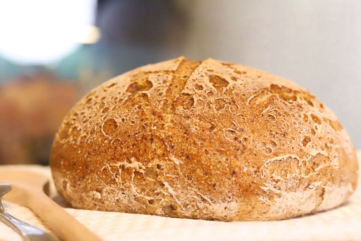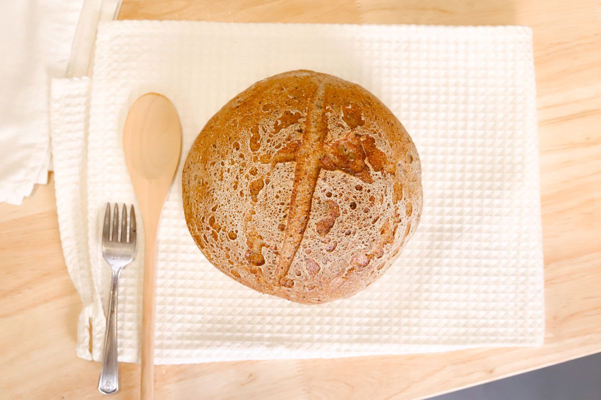 8. Form the dough back into a ball and place inside an oiled or parchment paper lined dutch oven. Score or use a tame to make your desired look. Bakers tip: if your dough is on the stickier side and you cannot score it, bake for 5 minutes first then tame and immediately return to the oven.
