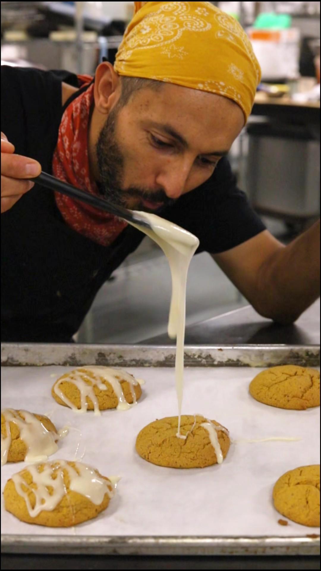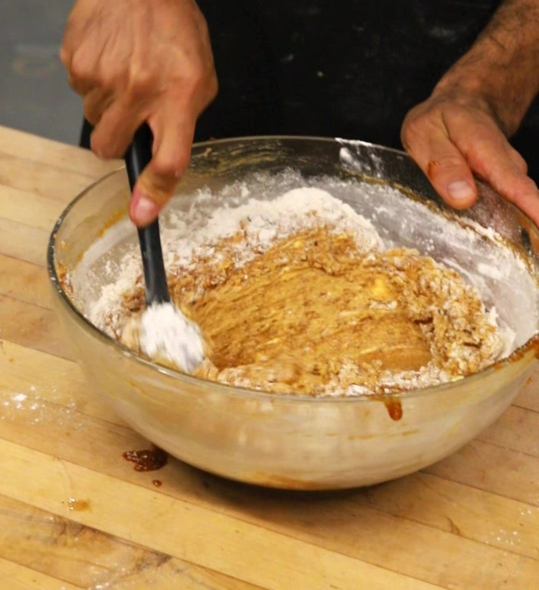 3. Cream butter and both sugars until fluffy. Add pumpkin, flax egg, and vanilla. Mix until smooth.